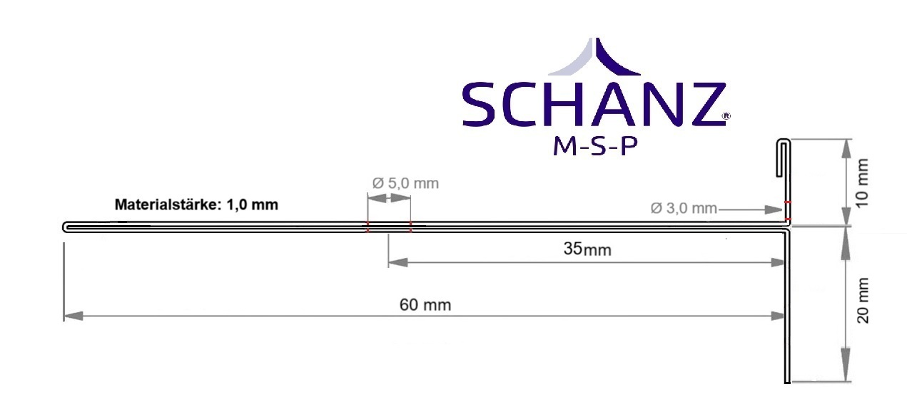 - kurze Seite: Entwässerungslöcher: Ø 3 mm; 3 cm